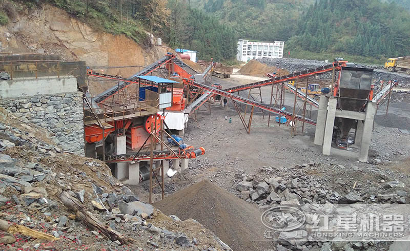 中小型礦石渣子破碎生產(chǎn)線現(xiàn)場